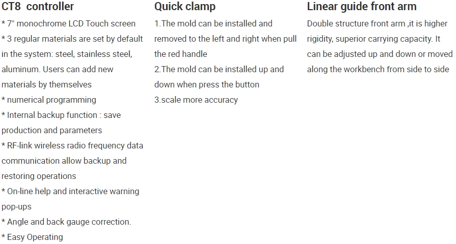 4.Electrical control and manual fine-tuning mode are adopted for distance of rear stopper and stroke of slider, and installed with digital display device, easy and quick for operator.