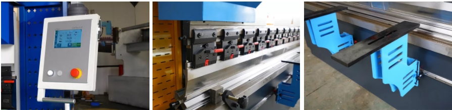 3.The oil cylinders fitted on both sides adopt closed loop control mode which is composed of Germany electro-hydraulic servo valve and imported grating ruler, breaking through the stroke control mode of traditional mechanical stop bending machine, ensuring the high precision of the glide position, the accurate and stable operation, the high precision of bending.